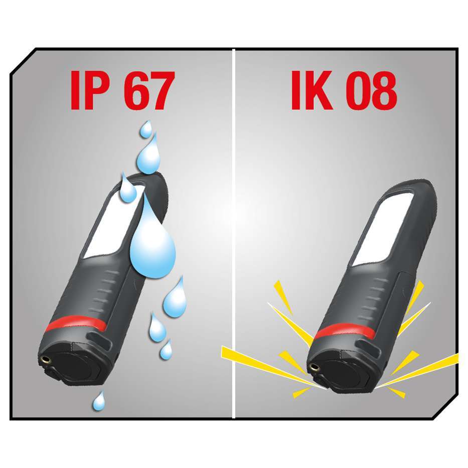Robust design: Impact-resistant casing (IK08). Resistant to workshop solvents and common chemical products, and being immersed in water (IP67).